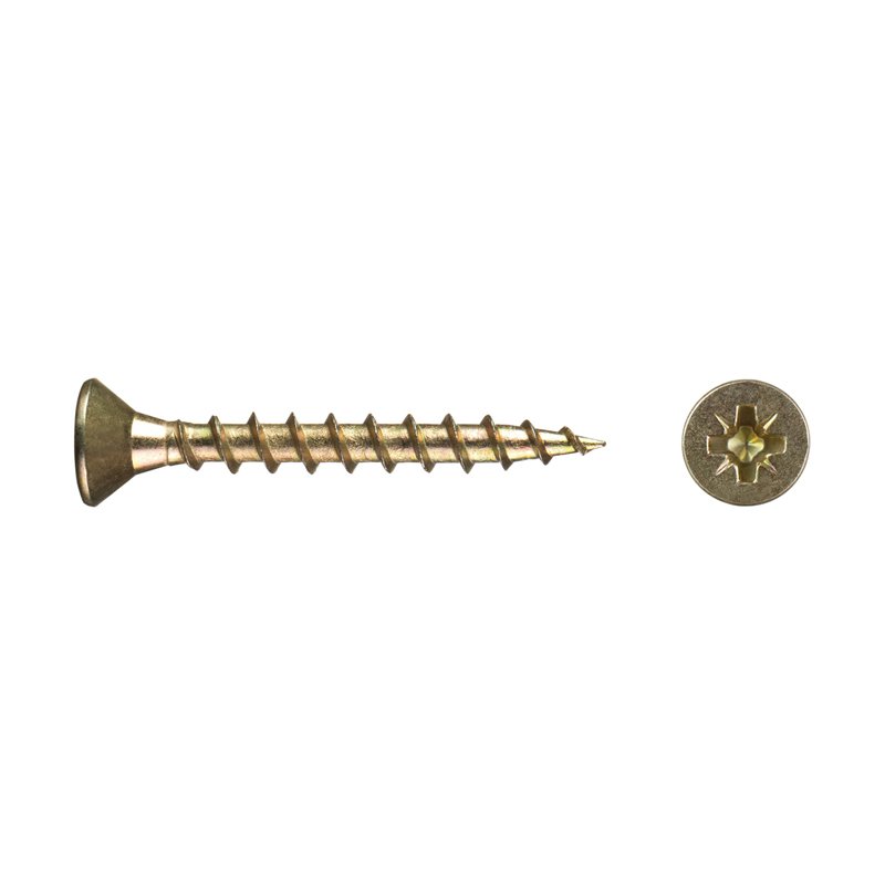 Саморез используется для крепления дерева, ДСП, ДВП и других материалов. Имеет потайную головку, крестообразный шлиц Pozi, острый наконечник, крупную резьбу.