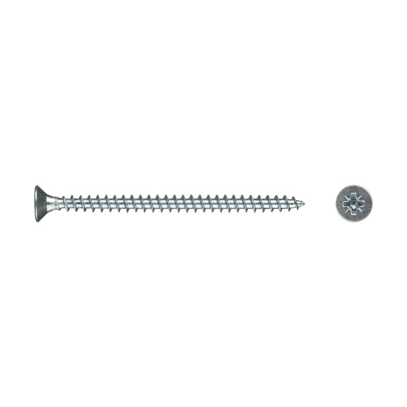 Саморез используется для крепления дерева, ДСП, ДВП и других материалов. Имеет потайную головку, крестообразный шлиц Pozi, острый наконечник, крупную резьбу.