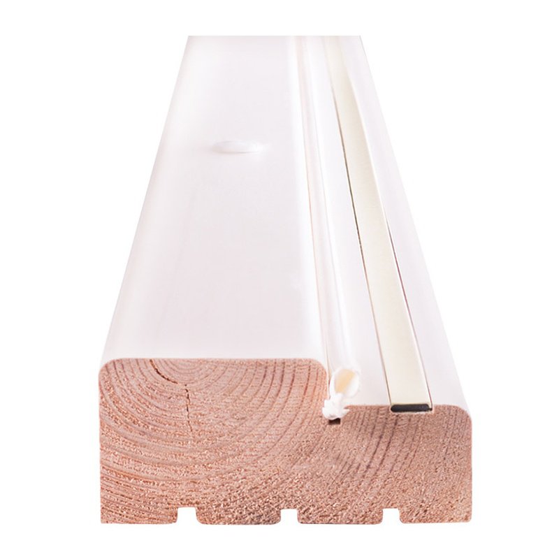 Стоевые однопольной дверной коробки, изготовлены из срощенного массива сосны, окрашены краской УФ-отверждения. Установлены врезной уплотнитель для звукоизоляции и защиты от "холодного" дыма, специальный термоактивный уплотнитель, расширяющийся под воздействием температуры, 3 петли NTR 110x30. Предназначена для противопожарных дверей с правым открыванием. Отдельно комплектуется перекладиной и порогом.