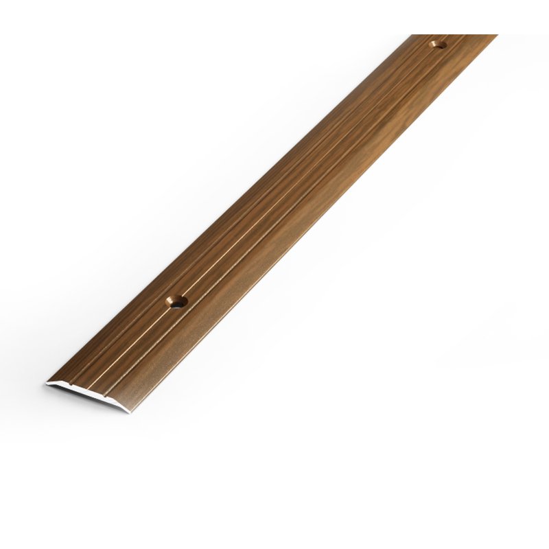 Предназначен для декоративной отделки стыков между различными напольными покрытиями. Комплектуется саморезами и дюбелями. Окрашен под структуру дерева.
