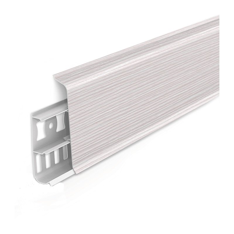 Предназначен для отделки, укладывается по периметру помещения между напольным покрытием и стеной. Плинтус состоит из двух частей, одна из которых крепится к стене, а вторая, декорированная, прикрепляется сверху с помощью специальных защелок. Между двумя частями образуются кабель-каналы, в которые можно проложить силовой, компьютерный, телевизионный и др. кабели. Мягкий обрезиненный край плинтуса предотвращает попадание влаги и пыли между стеной и полом.