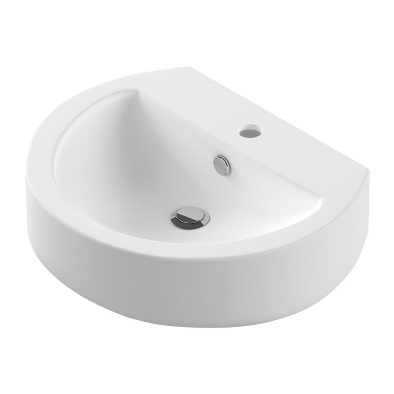 Представляет собой модель из высококачественного фарфора. Главное отличие этого материала в том, что он легко чистится, не трескается даже после многолетней эксплуатации, на нём не сказывается постоянное воздействие влаги. Блестящий белый цвет в сочетании с гармоничной формой смотрится минималистично и стильно. Модель имеет два способа установки: на кронштейны или на пьедестал.