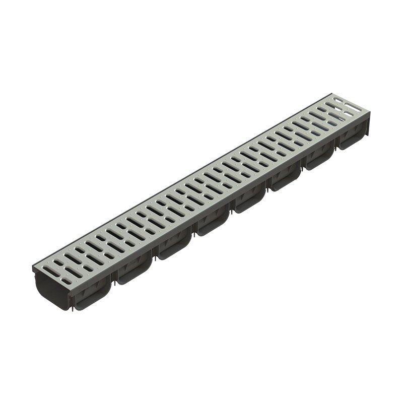 Предназначен для устройства поверхностного водоотвода с территорий подверженных средним нагрузкам - парковки для легковых автомобилей, тротуары, пешеходные зоны, велосипедные дорожки, приусадебные участки и др. Гидравлическое сечение лотка DN100. Поставляется в комплекте со стальной оцинкованной решеткой. Выдерживает нагрузки в диапозоне классов А15 - В125. Имеет выходы для подсоединения канализационной трубы d=60-110мм, других лотков этой же серии, а также пескоуловителей и дождеприемников.