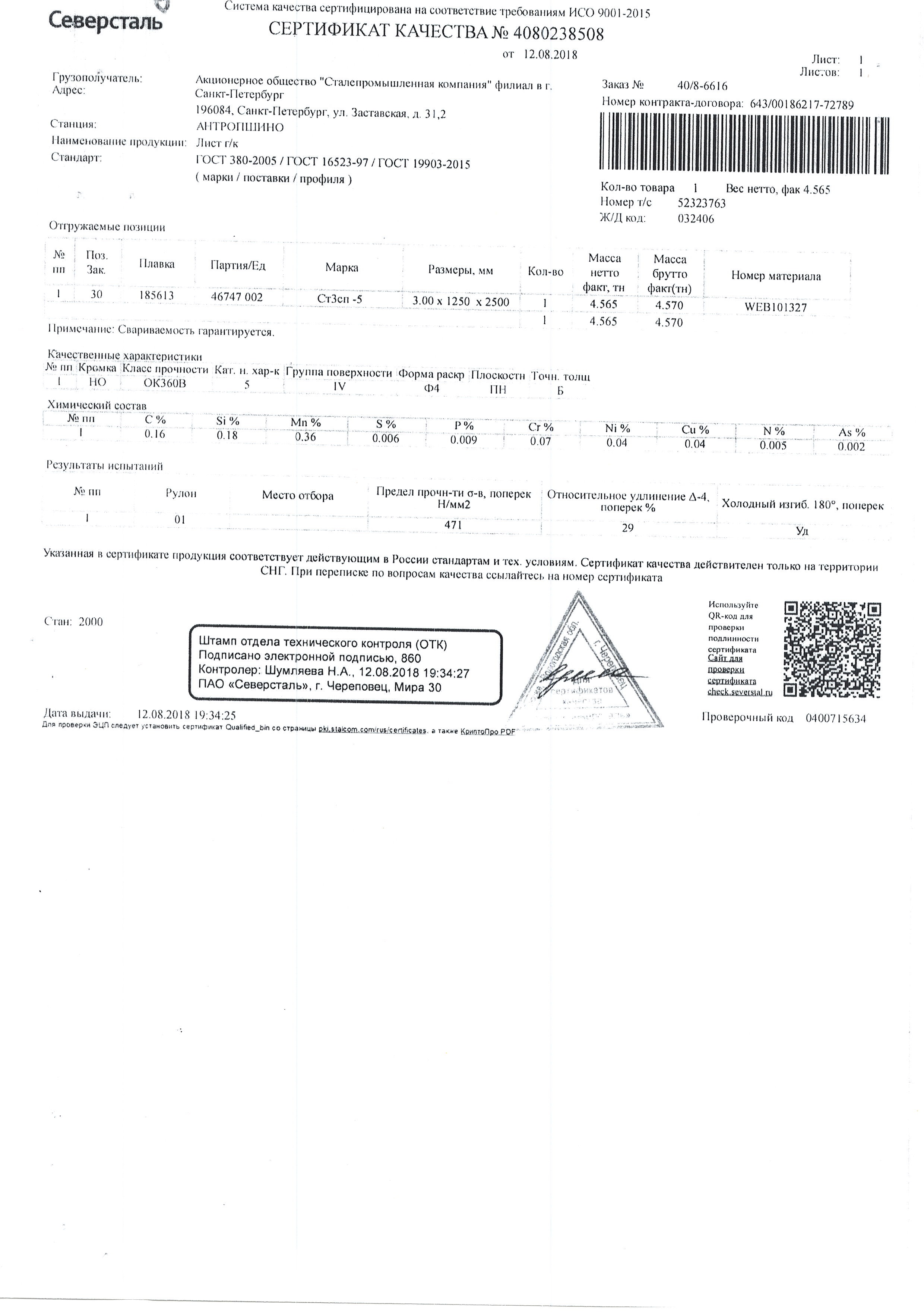 Допустимое отклонение в длине +/- 50мм, предельное отклонение толщины стенки от -25% до +12,5%