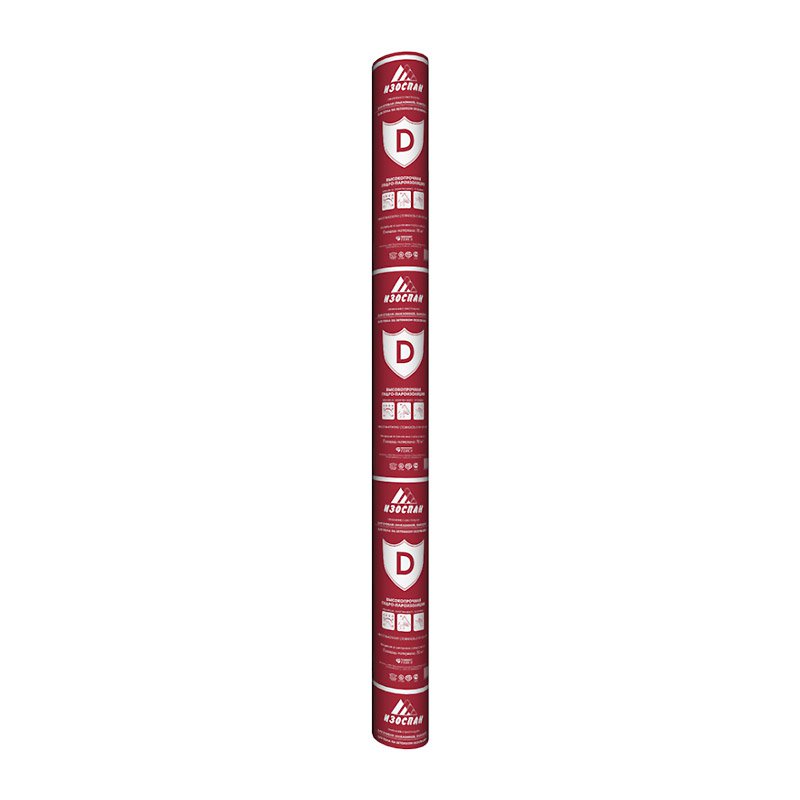 Изоспан D – двухслойный материал на основе высокопрочного полипропиленового тканого полотна, применяется в строительстве для защиты конструкции здания от проникновения из атмосферы водяных паров, конденсата и влаги, а также в неутеплённых кровлях для защиты кровельного покрытия от влияния внутренней влаги и конденсата. Благодаря повышенной прочности материал способен выдерживать значительные механические усилия в процессе монтажа и эксплуатации, может нести снеговую нагрузку.