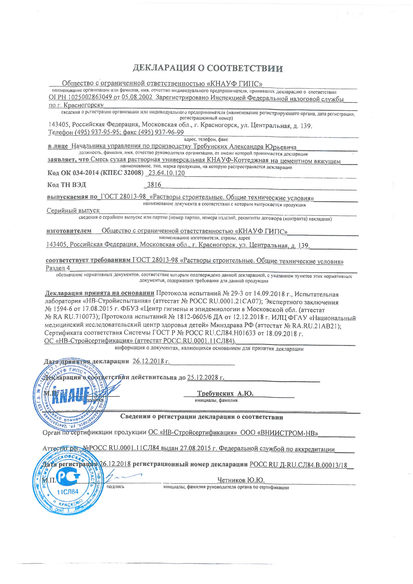 Применяется для наружных и внутренних работ. Смесь цементная универсальная КНАУФ-Коттеджная может быть применена и как обычная штукатурная смесь, как смесь для ремонта старых штукатурок, заделки сколов, и как кладочная смесь при отделке фасадов.