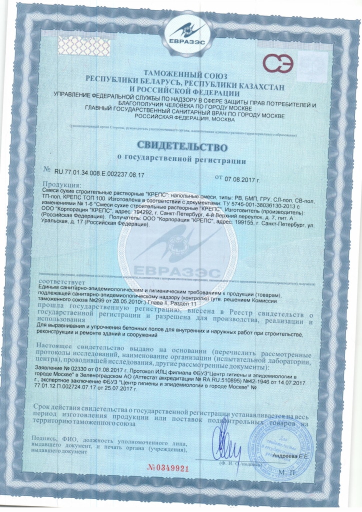 Высокомодифицированная сухая строительная смесь на цементной основе, образующая при смешивании с водой подвижную самовыравнивающуюся растворную смесь (наливной пол). Затвердевший раствор обладает высокой прочностью и водостойкостью. Самовыравнивающийся состав для пола Крепс БМП 2в1 предназначен для выравнивания и корректирования бетонных полов и цементных стяжек под укладку напольной плитки, выстилающих покрытий и паркета. Величина слоя выравнивания от 5 до 100 мм. Для ручного и машинного нанесения. Рекомендуется для применения при устройстве обогреваемых полов.